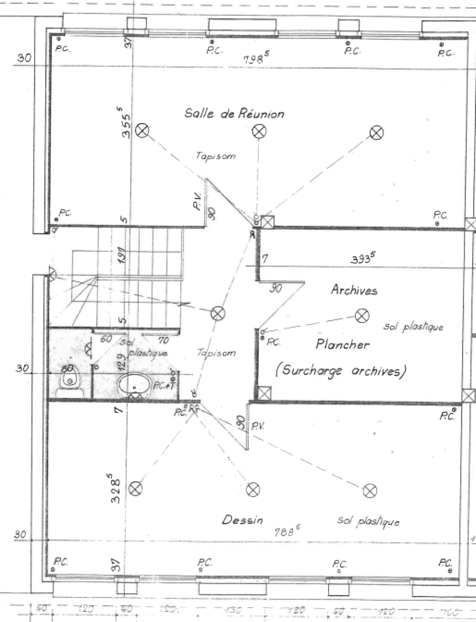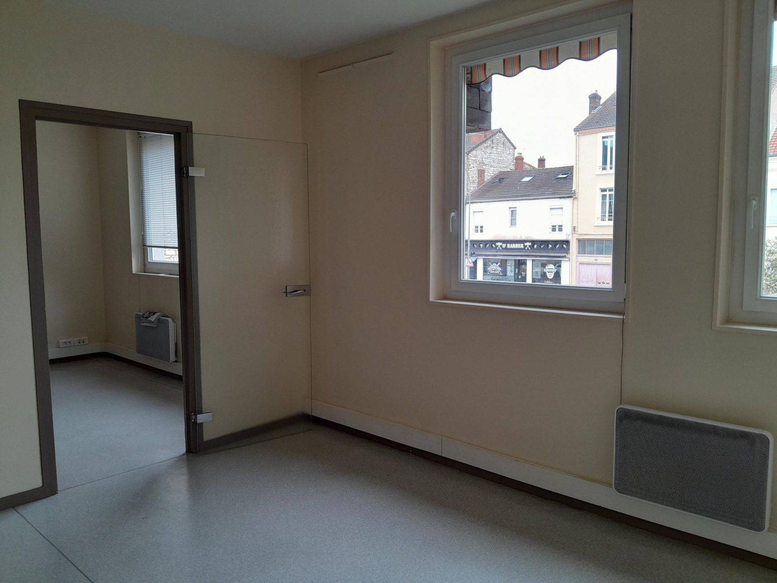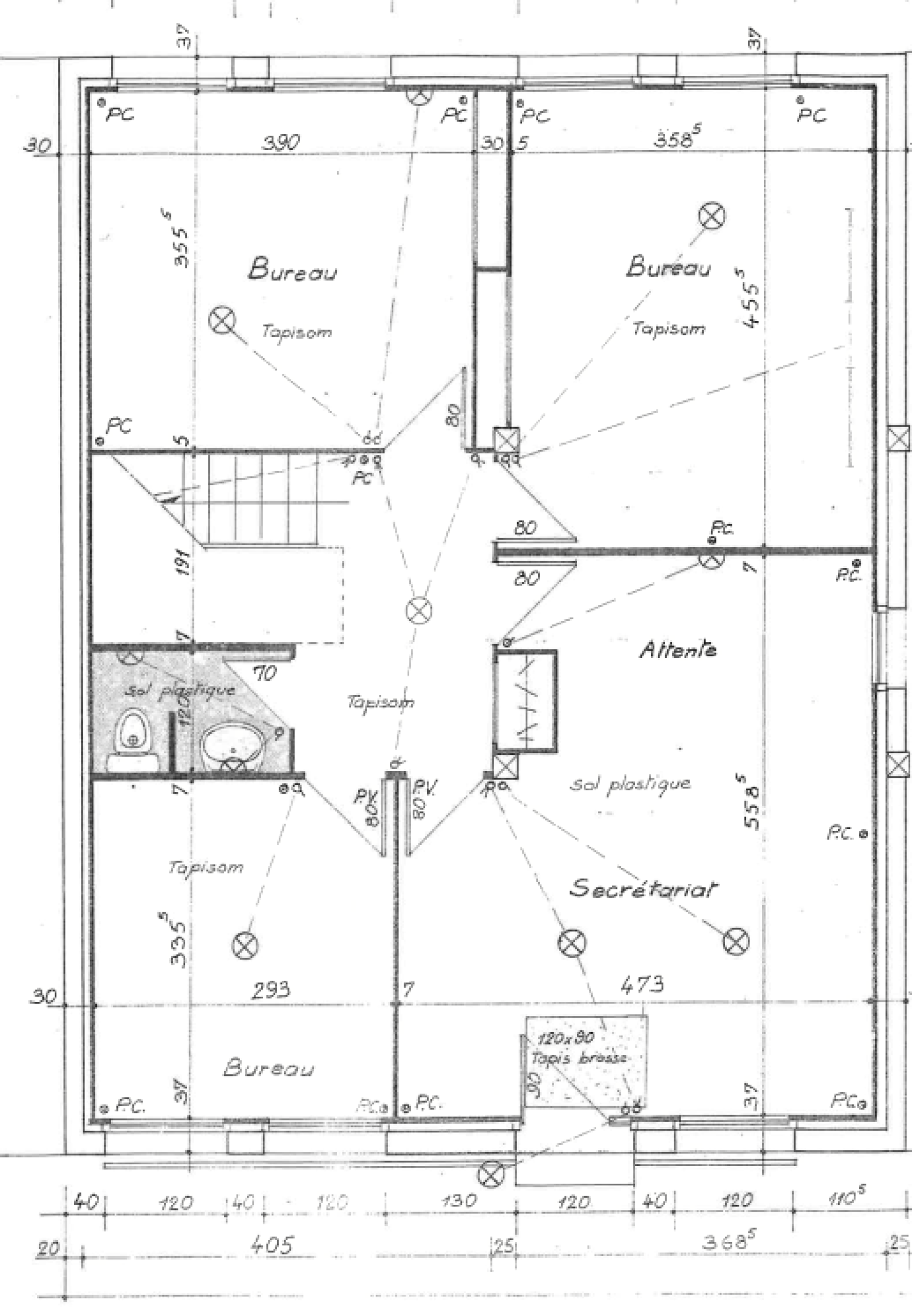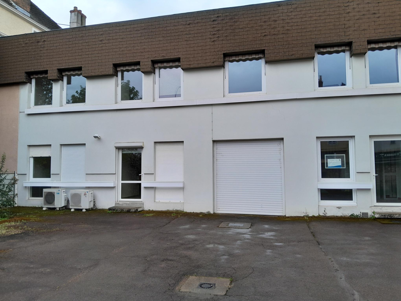 - Rez-de-chaussée : quatre bureaux et sanitaires (sol PVC grand passage refait récemment).