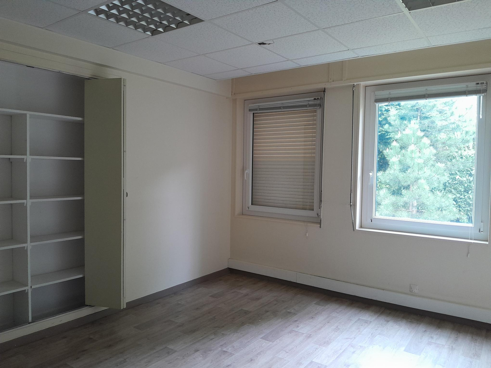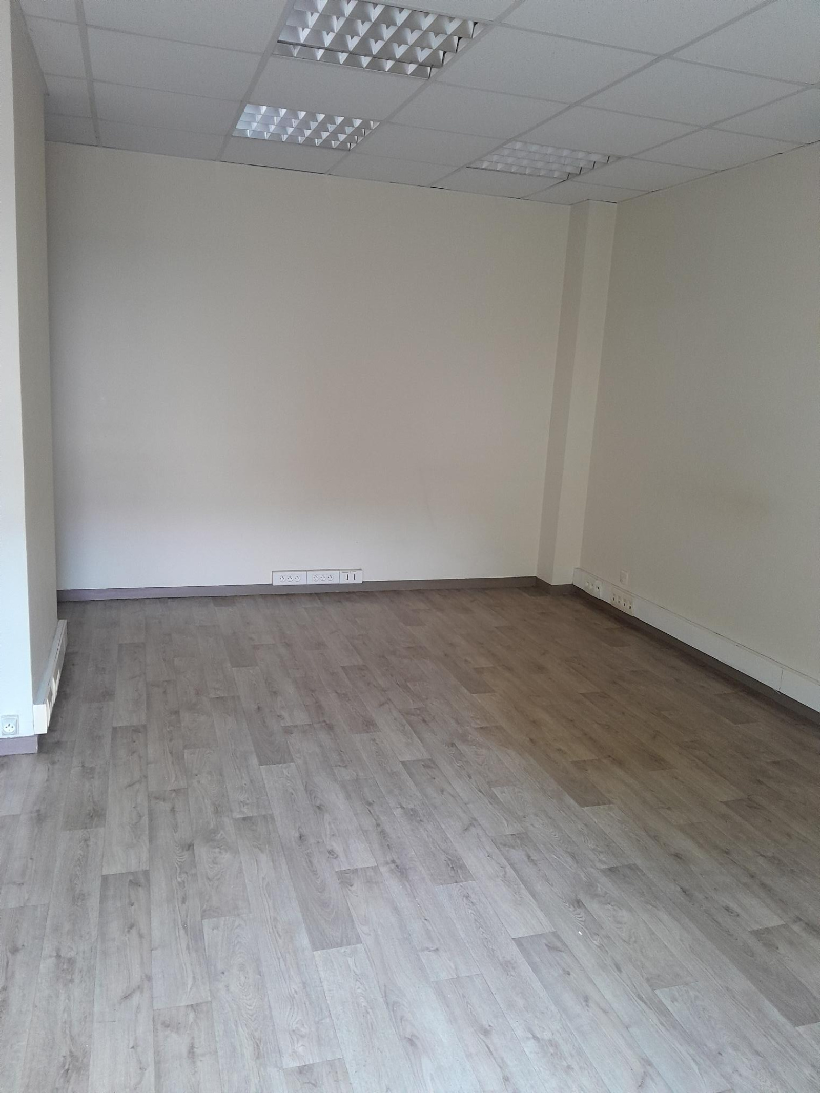 - Niveau supérieur : un grand bureau, une salle de réunion, un second bureau et une pièce avec point d'eau pouvant faire office de salle de pause (sol PVC).