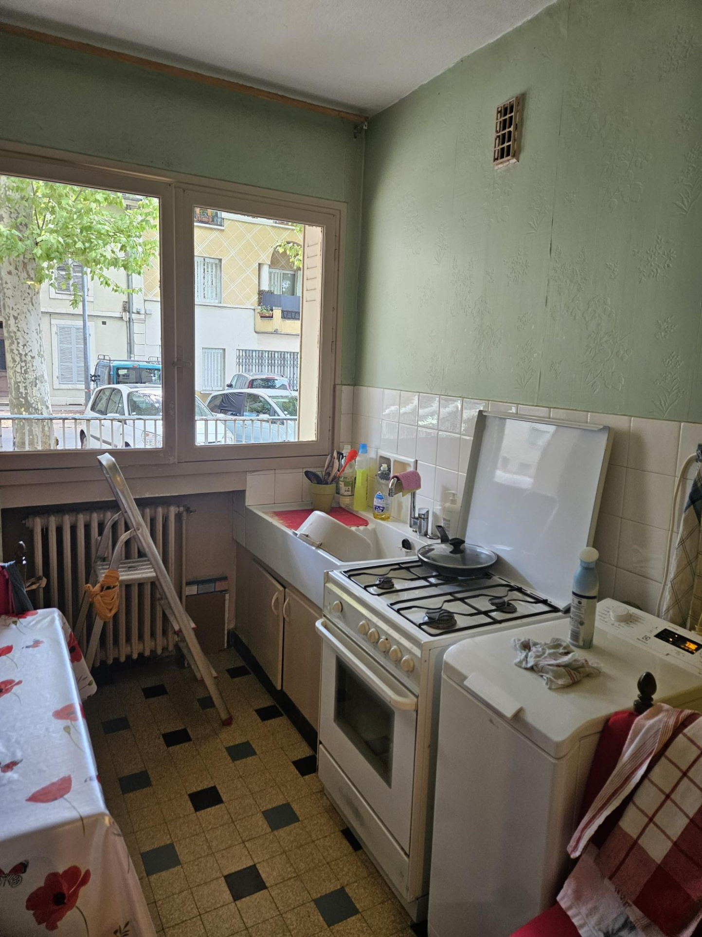 L’appartement se compose d’une entrée desservant un séjour, une cuisine indépendante, une salle d’eau ainsi que des WC séparés.