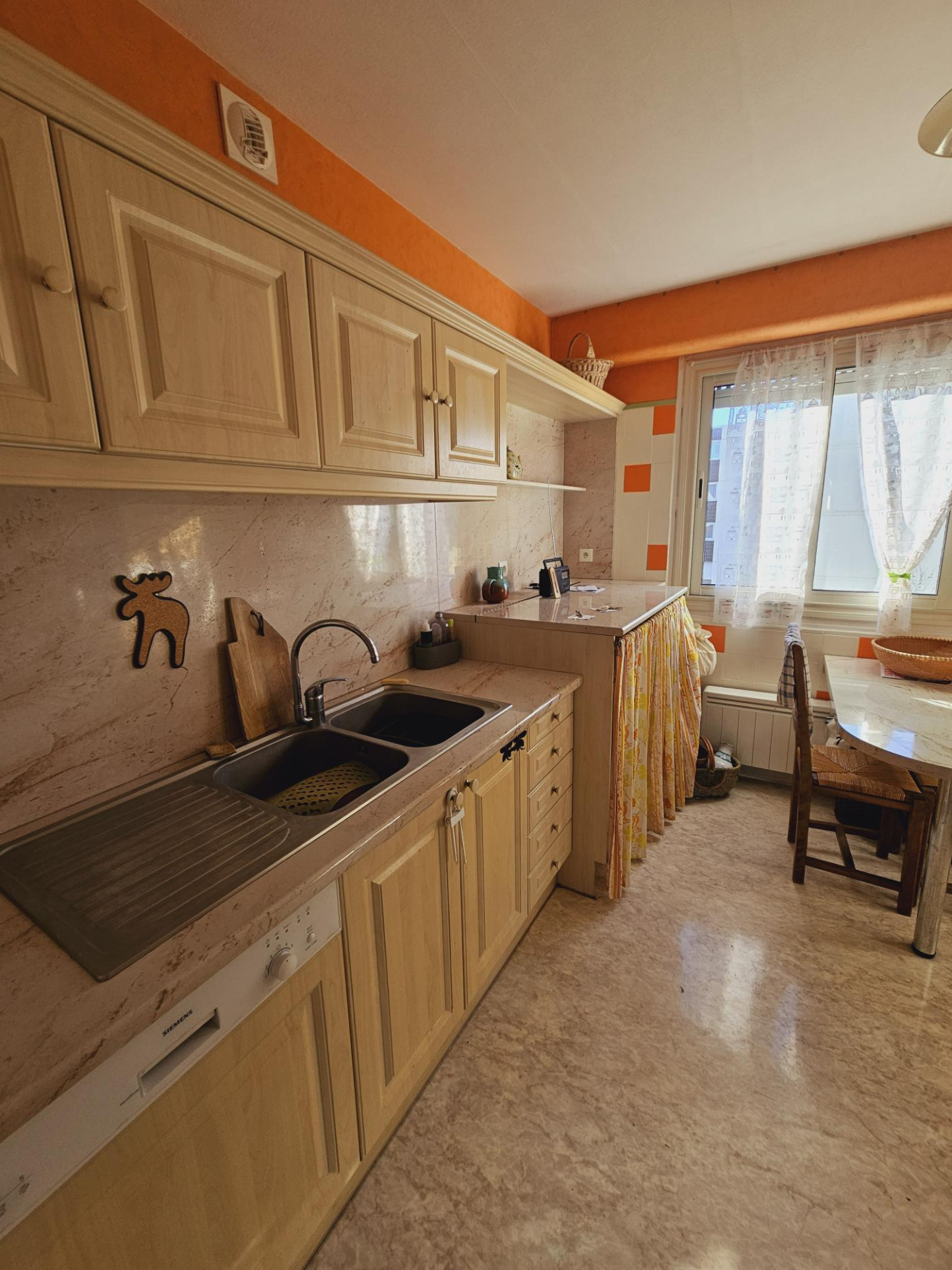 L’appartement est à vendre avec une cave, une place de parking en sous-sol et un garage.