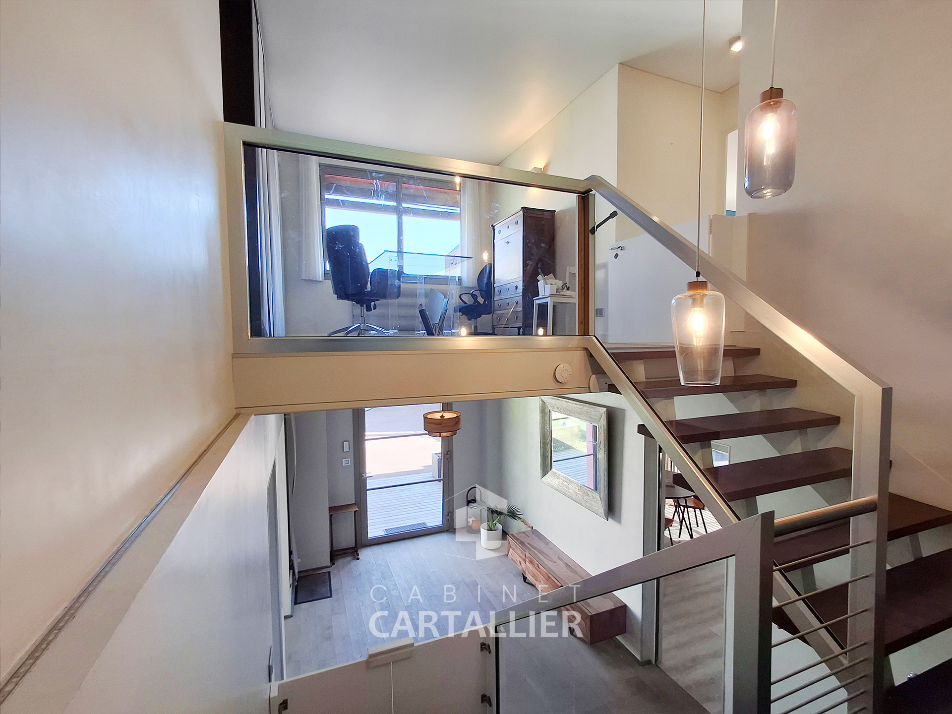 - Une mezzanine ouverte actuellement aménagée en bureau,
