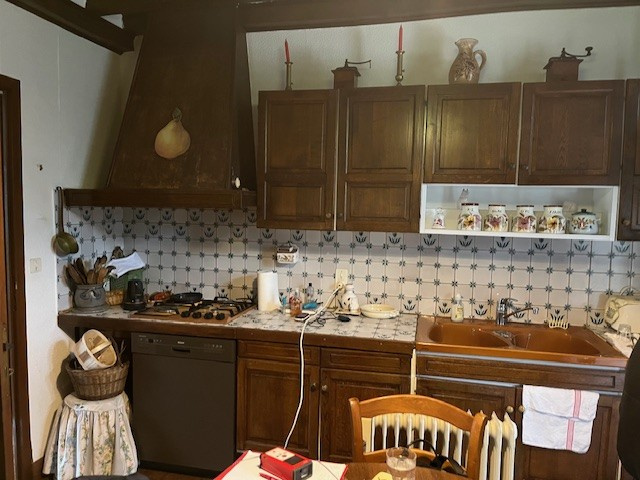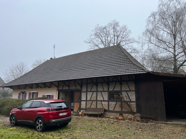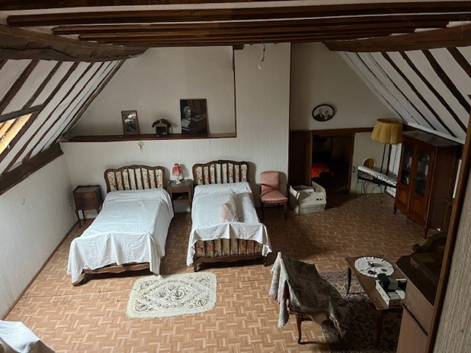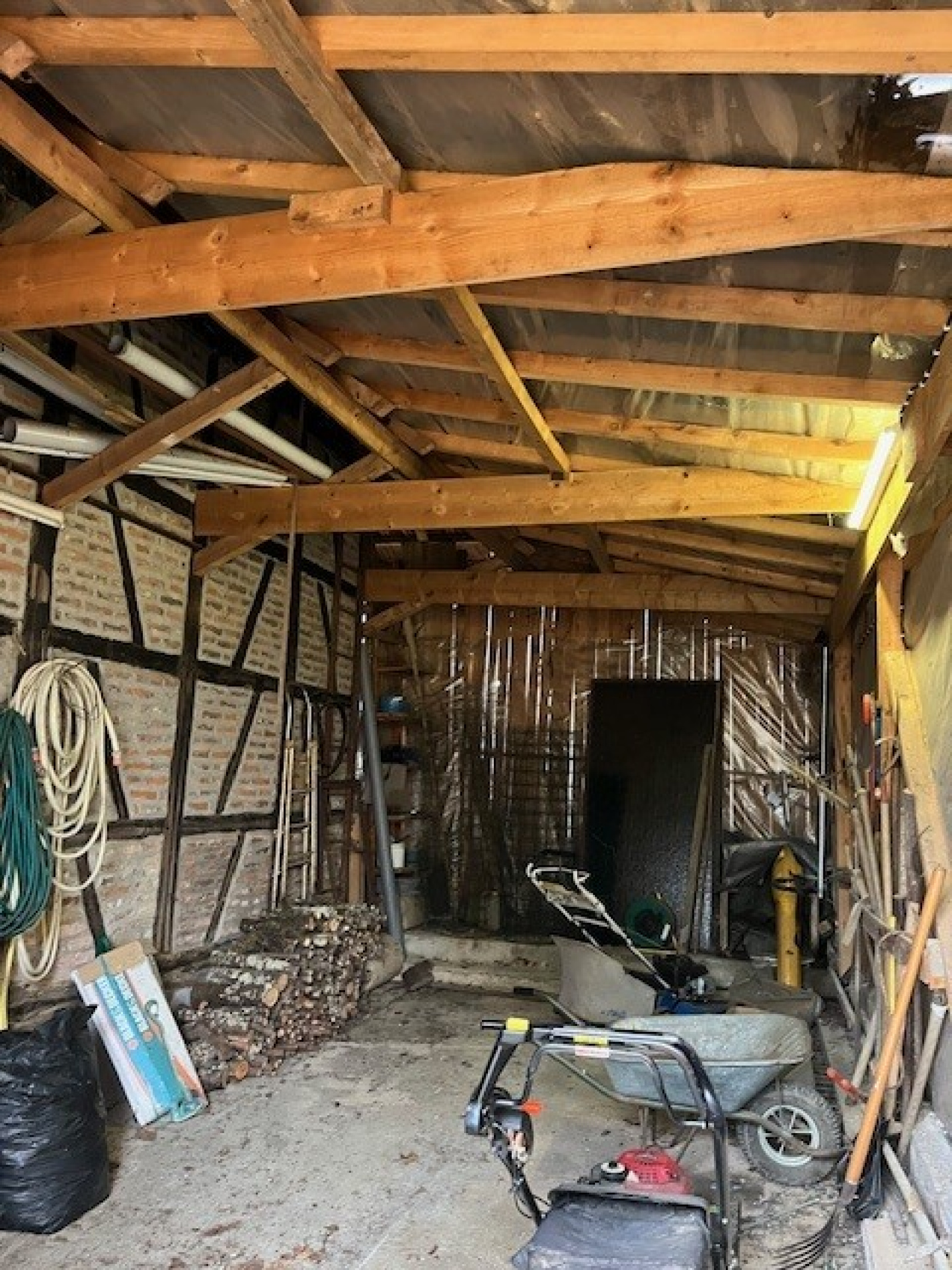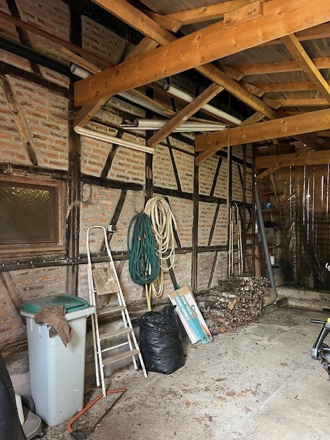 La seconde partie de l’ensemble se compose d’une habitation d'environ 62m² intégrée à une grande grange à pans de bois et briques, avec grenier au-dessus, comprenant également une pièce équipée d’un lavabo, ainsi qu’une cave et un appentis. L’habitation se distribue ainsi : une entrée, une cuisine, un séjour, un cellier, une chambre, une salle de bains et un WC. Cette partie habitation est actuellement louée 419€ / mois).