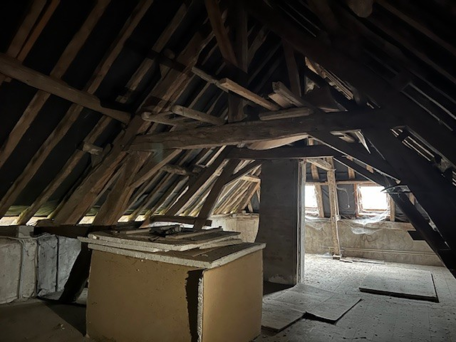 Le rez-de-jardin comprend également un bureau, une salle de bains avec placard, deux WC, et quatre chambres, dont une avec salle d’eau privative. À l’étage, vous profiterez d’une vaste pièce mansardée et d’un accès supplémentaire aux combles, offrant un potentiel d’aménagement.