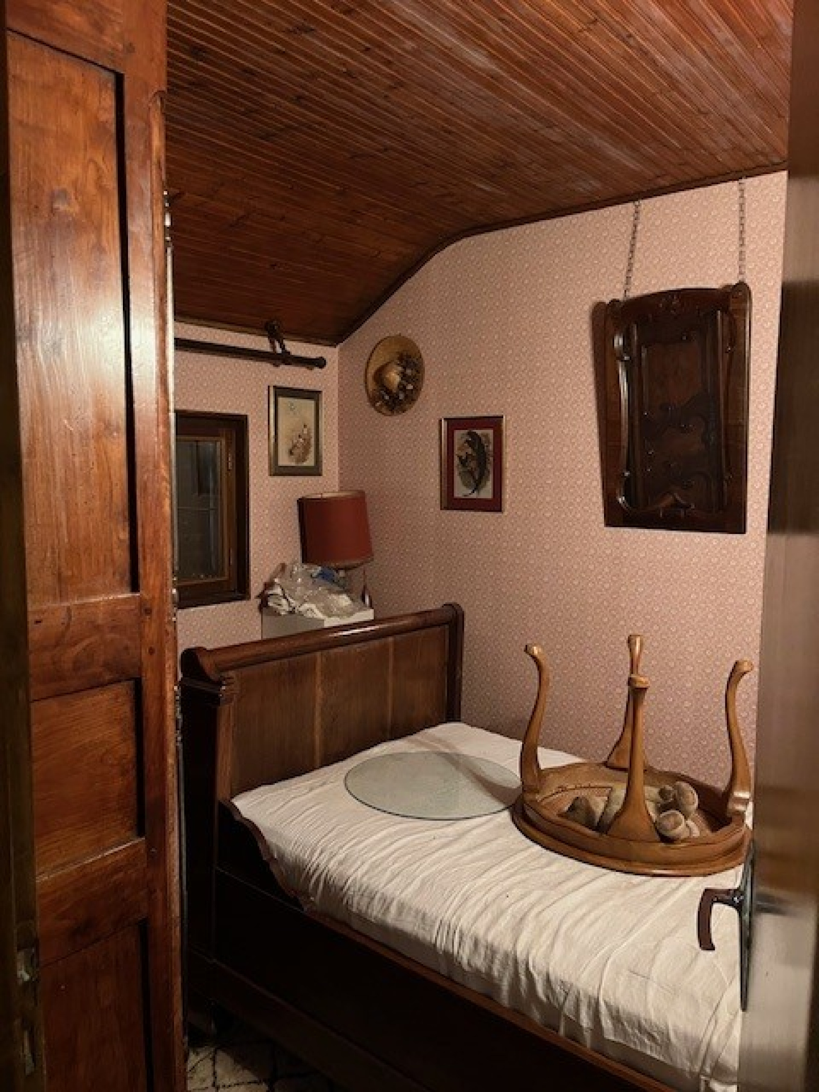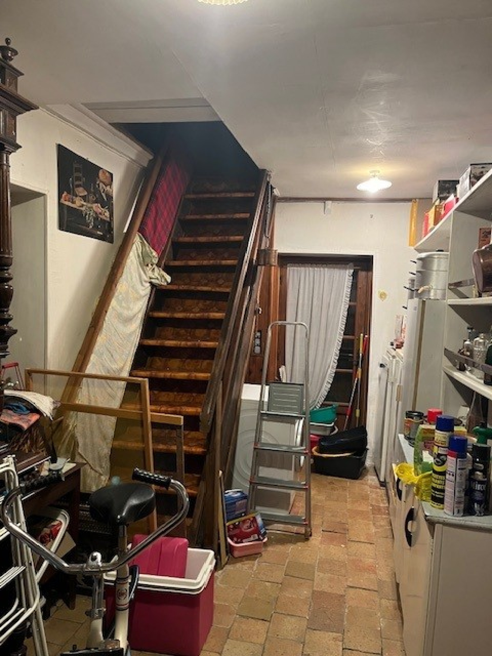 Elle se compose d’une cuisine aménagée, d’un séjour double lumineux avec cheminée insert ouvrant sur une terrasse carrelée, ainsi que d’une pièce attenante donnant accès aux combles.